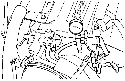 1. Disconnect the vacuum hose (red stripe) from the throttle body, and connect a vacuum pump to the vacuum hose.