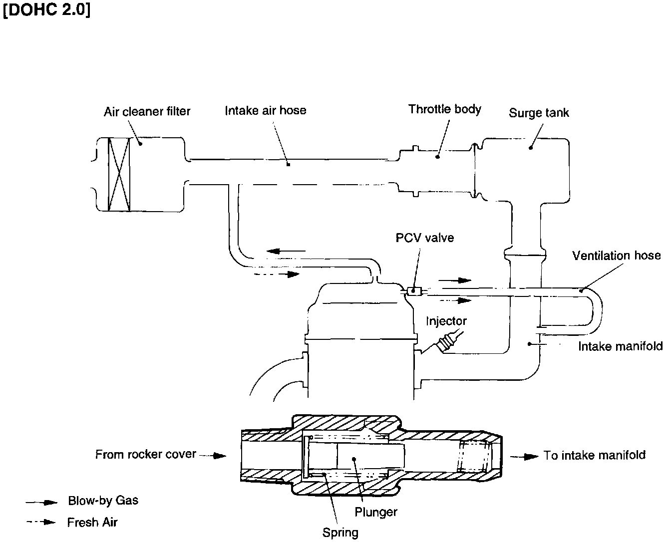 3. If the plunger does not move, the positive crankcase ventilation valve is clogged. Clean or replace it.