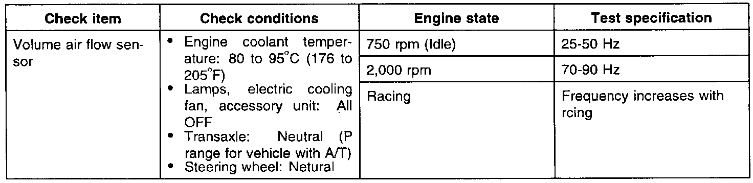 NOTE: When the vehicle is new [within initial operation of about 500 km (300 miles)], the volume air flow sensor output frequency may be about 10% higher.