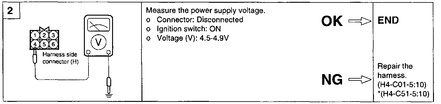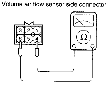 4. If the value deviates from the standard value or the resistance remains unchanged, replace the volume air flow sensor assembly.