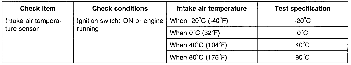 NOTE: The intake air temperature sensor senses the intake air temperature in the air cleaner to indicate a temperature different from outside temperature.