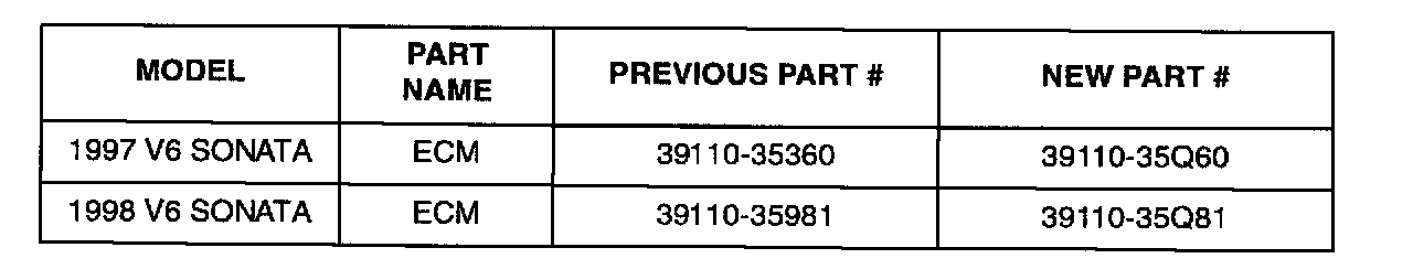 Model: 1997 & 1998 V6 SONATA