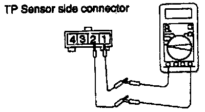 NOTE Do not disconnect the TP Sensor connector. Use a digital type voltmeter to obtain an accurate value.