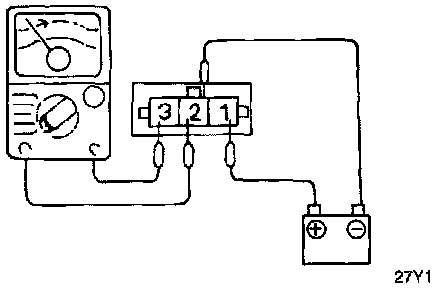 1. Connect the negative (-) terminal of a 3 V power supply to terminal 2 of the power transistor; then check whether there is continuity between terminal 3 and terminal 2 when terminal 1 and the positive (+) terminal are connected and disconnected.