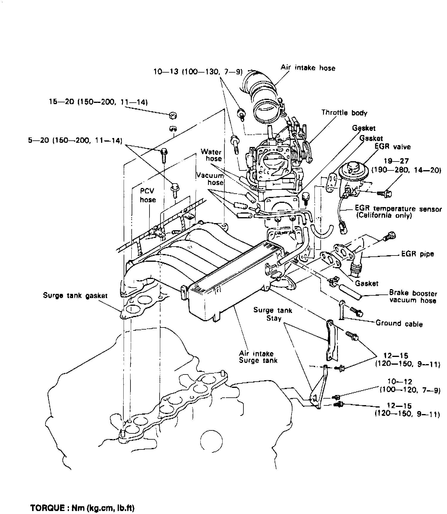 Throttle Body to Surge Tank 15 -20 Nm (11 - 14 ft. lbs.)