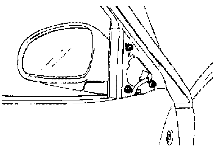 3. Remove the rear view mirror mounting screws and then remove the rear view mirror. Disconnect the remote control and mirror heated connector (Electric type only)