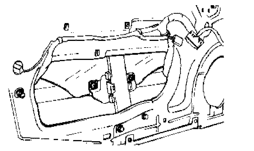 1. Installation is the reverse of removal procedure. When installing the door trim seal, butyl tape should not be placed over the door trim fastener mounting area.