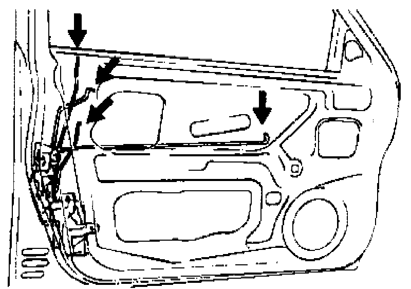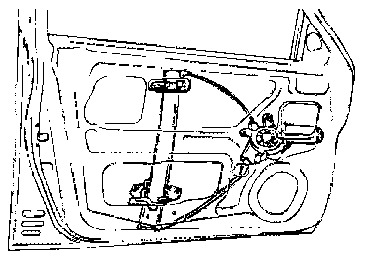 14. Remove the door regulator channel mounting bolts and then remove the door regulator assembly.
