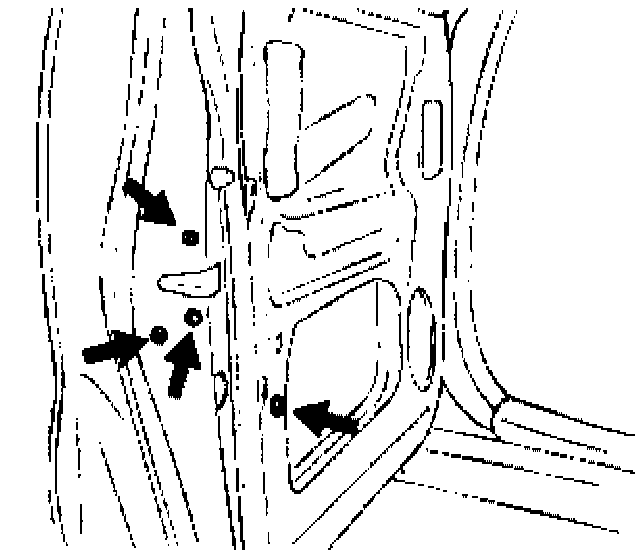 16. Remove the outside door handle mountings bolts.