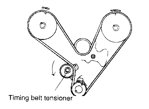 NOTE: The timing belt tension does not normally require adjustment. However, if noise results from the timing belt hitting the cover, timing belt tension should be adjusted using the following procedure.