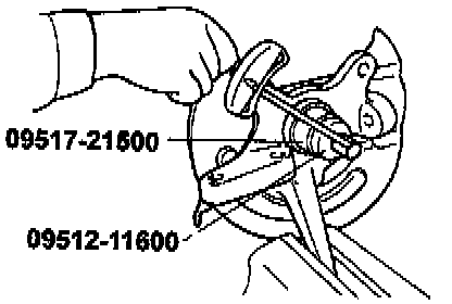 NOTE When removing the inner race (outside) from the hub, be careful not to drop the hub.