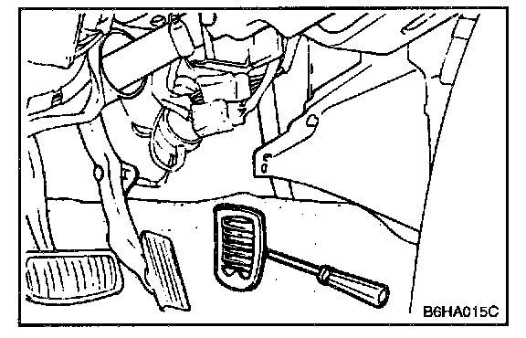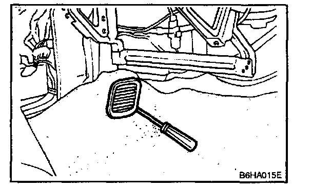 6. Turn over the carpet and remove the console mounting bracket (LH).