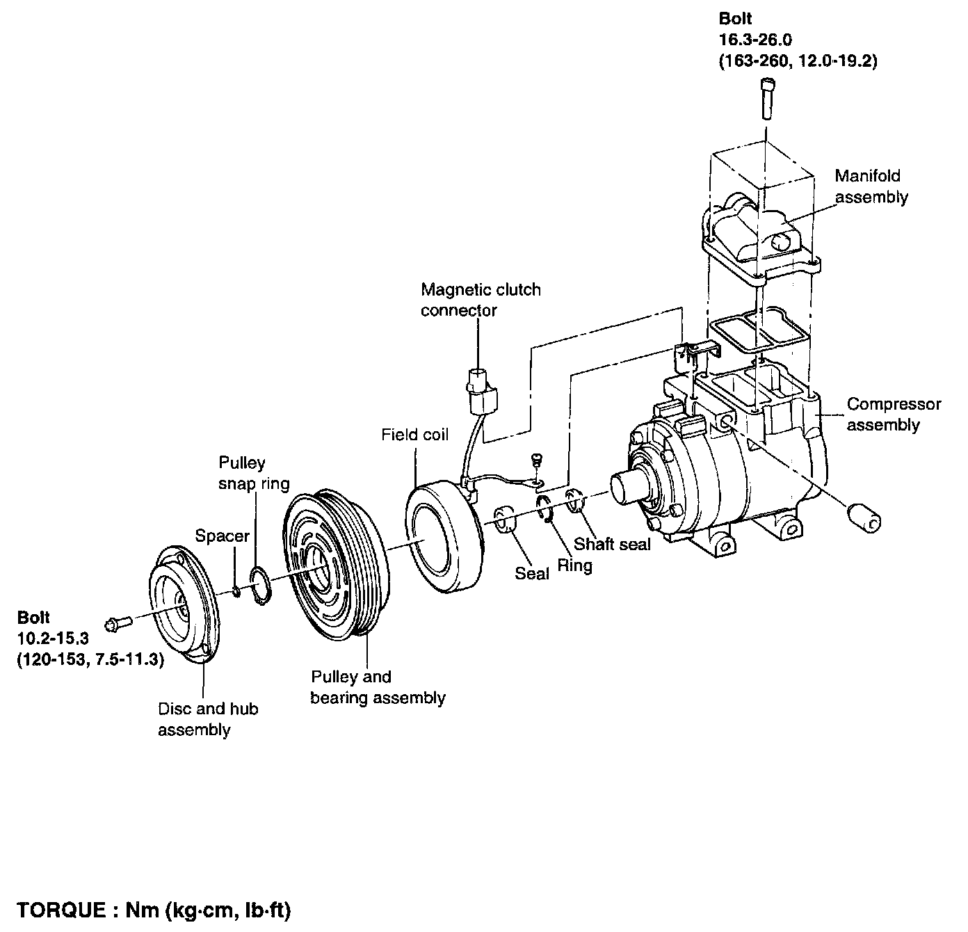 Tightening torque : 10.2 - 15.3 Nm (102 - 153 kg.cm, 7.5 - 11.3 lb.ft)