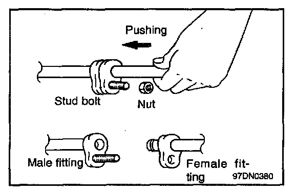 1. Check for missing or damaged the new O-ring (use only specified one) and lubricate using compressor oil. Hand tighten the nut by pushing the one side pipe. Tighten the nut to specified torque.