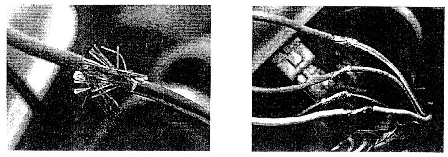 6. Slide the heat shrink tubes, supplied with the repair kit, on the end of each of the four wires on the new MAF sensor connector pigtail.