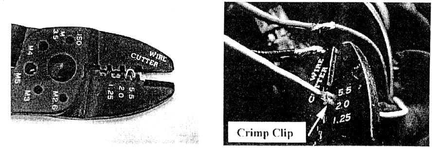 8. Using the included crimp clips, crimp the wires together, using an electrical crimping tool. Make sure to use one of the "Large" crimp clips on the red wire.