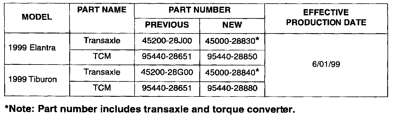 The 1999 Elantra and 1999 Tiburon automatic transaxies have been modified as follows: