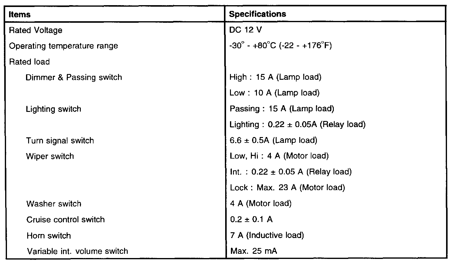 Electrical Specifications