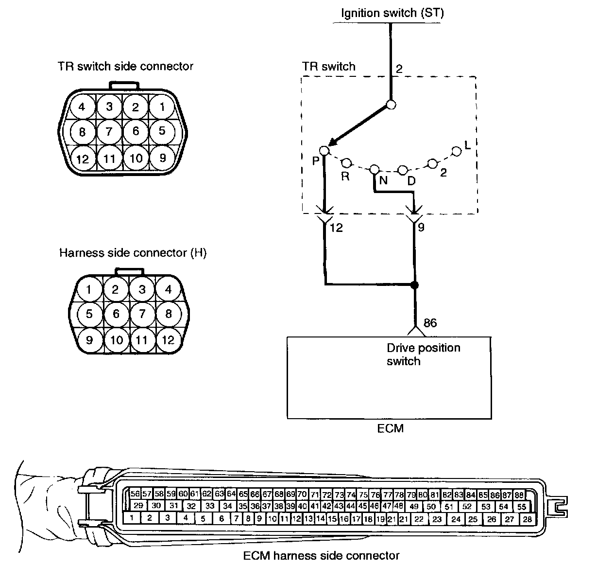 If the park/neutral position switch harness check is normal but the park/neutral position switch output is abnormal, check the control cable adjustment.
