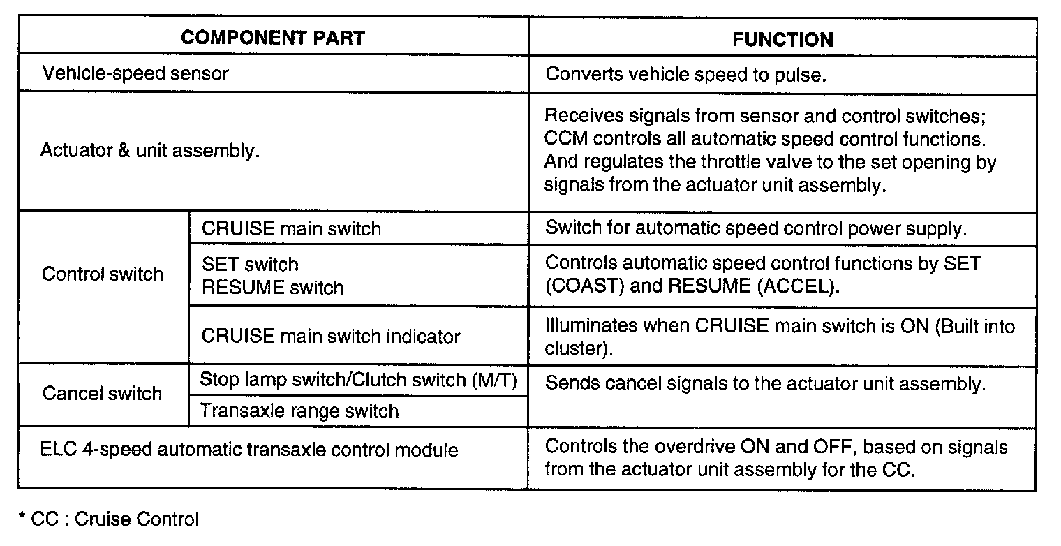 COMPONENT PARTS AND FUNCTION OUTLINE