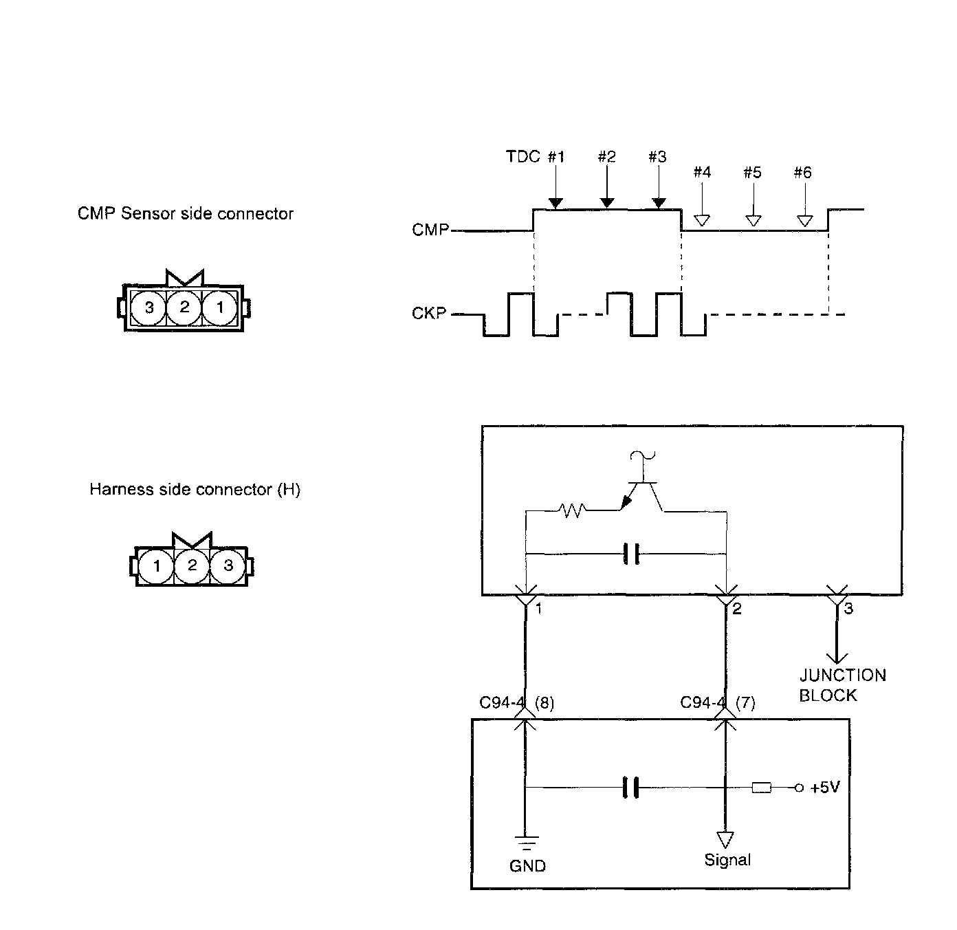 If the camshaft position sensor does not operate correctly, correct sequential injection is not made so that the engine may stall or run irregularly at idle or fail to accelerate normally