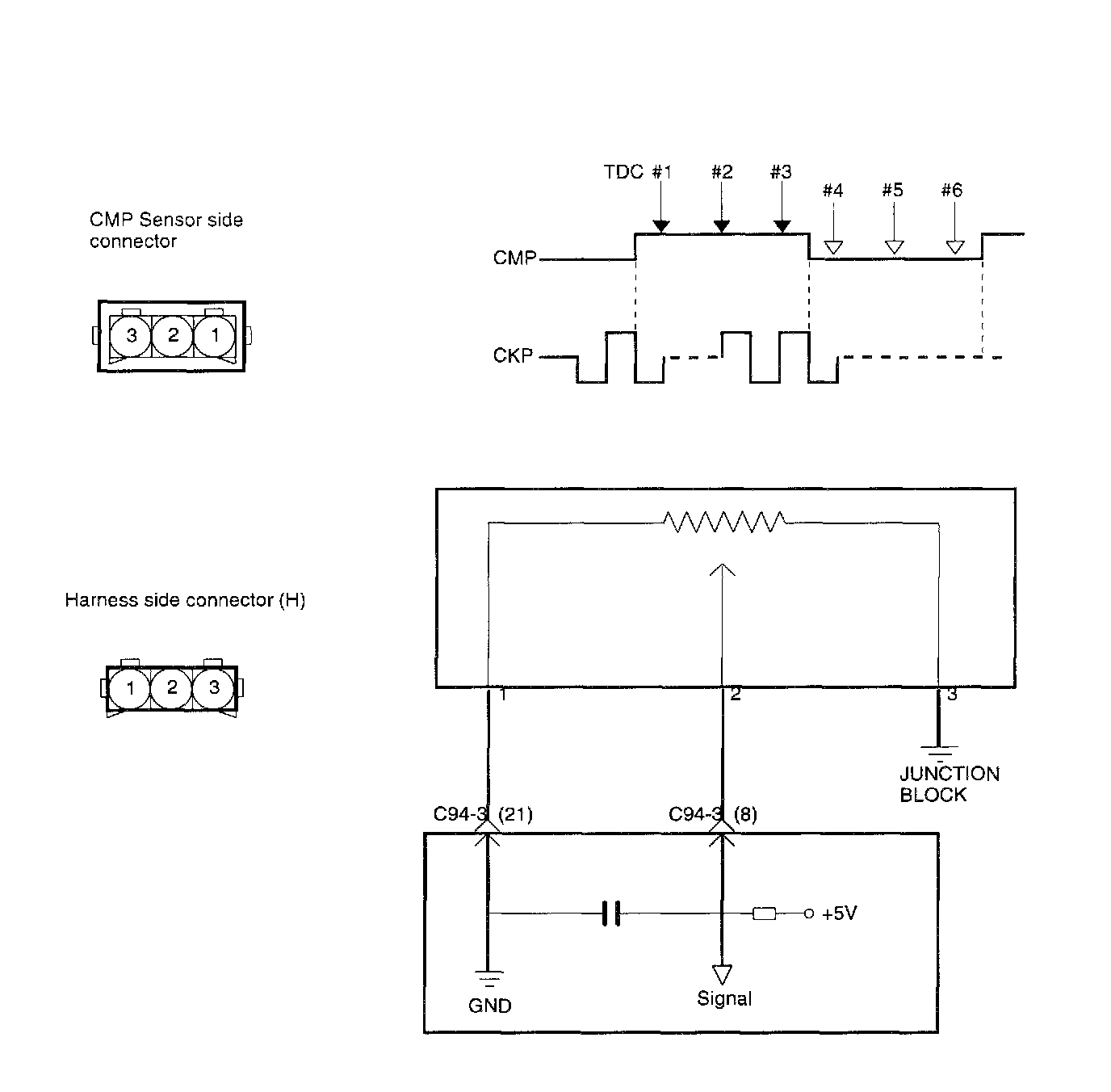 1. If unexpected shocks are felt during driving or the engine stalls suddenly, shake the crankshaft position sensor harness. If this causes the engine to stall, check for poor sensor connector contact.