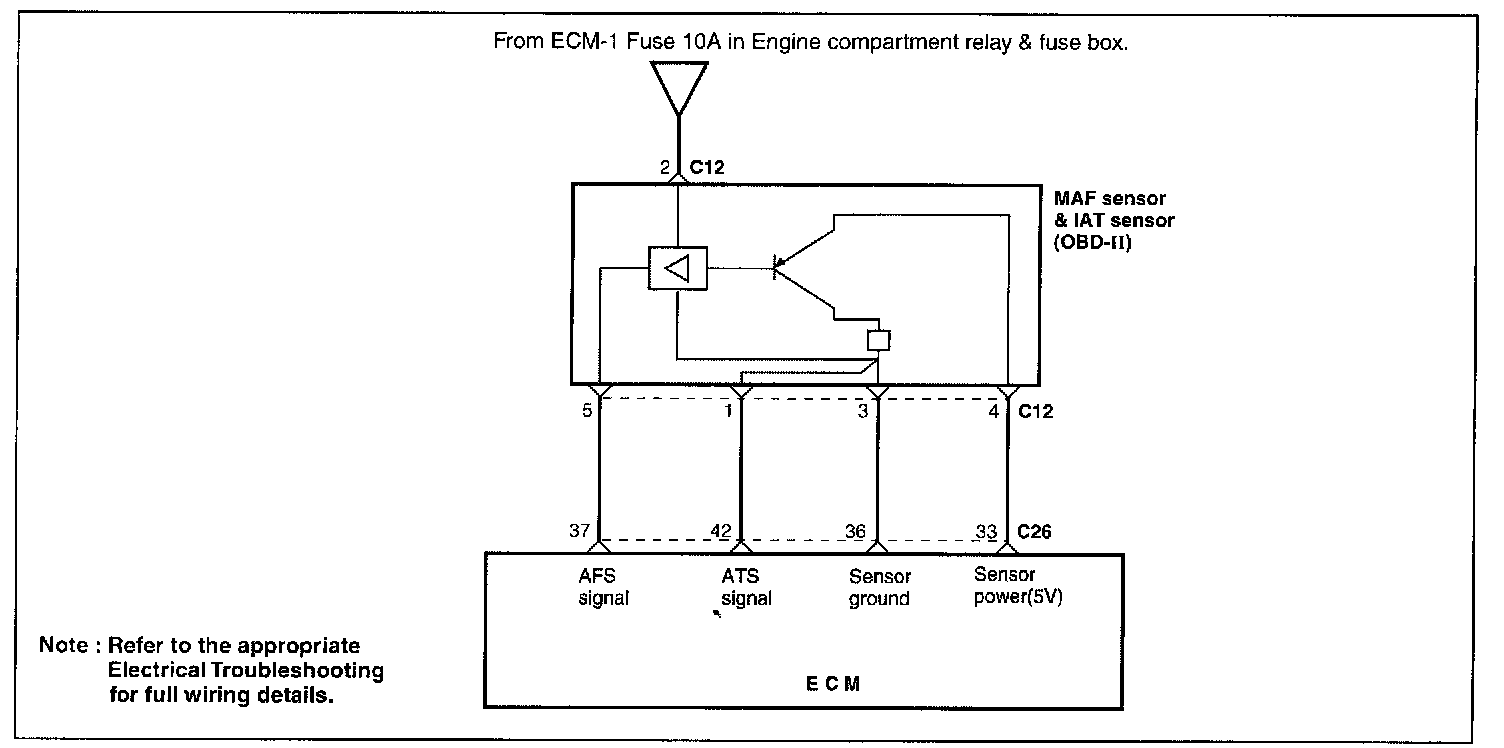 1. If the engine occasionally, stalls crank the engine and shake the MAF sensor harness. If the engine stalls, check the poor contact of the MAF sensor connector.