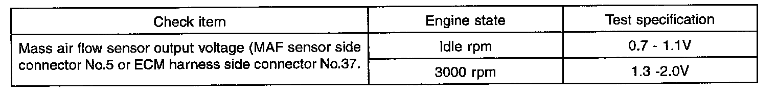 3. If the engine can idle even though the MAF sensor output voltage is out of specification, check for the following conditions:
