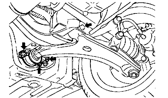 5. Remove the lower arm bushing mounting bolts and nuts.