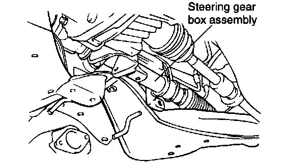 6. To remove the crossmember, remove the steering gear box mounting bolts, and then support the steering gear and linkage on the vehicle side as illustration.