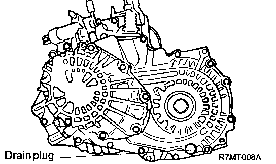 1. With the vehicle parked on a level surface, remove the drain plug and drain the transaxle oil.