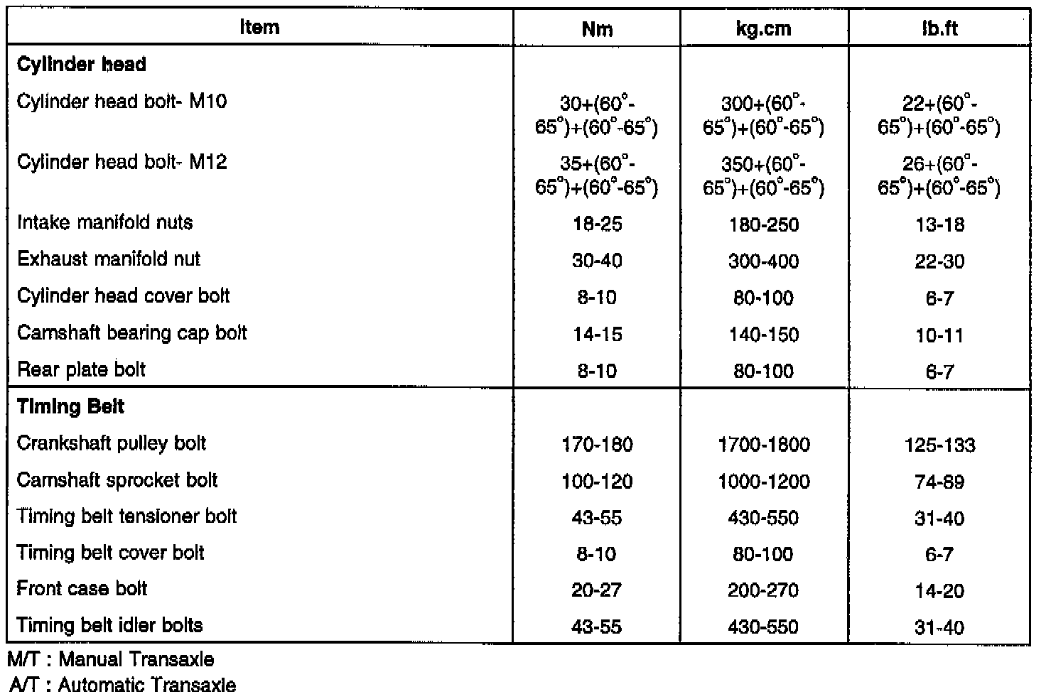 Cylinder Head Bolt Tightening torque: