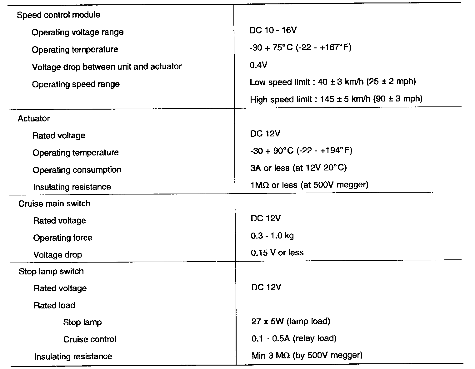 Cruise Control: Specifications
