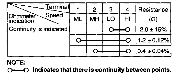 If measured resistance is not within specification, the blower resistor must be replaced. (After removing the resistor)