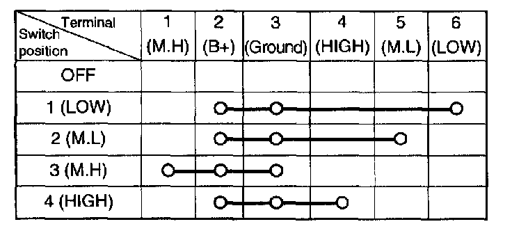 CHECKING OF THE CONTROL PANEL ASSEMBLY BLOWER SWITCH