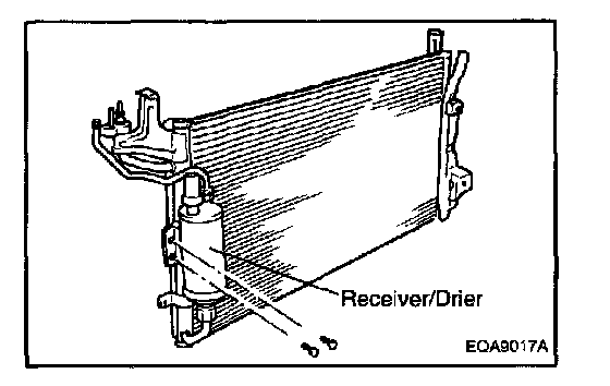 3. If the receiver-drier is replaced with a new unit, add 40 cc of compressor oil to the compressor.