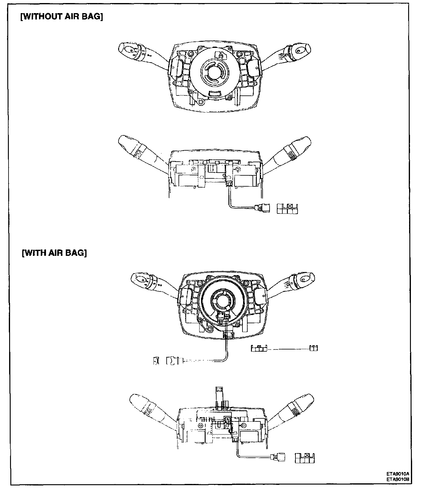 CAUTION: Prior to removing of the multifunction switch assembly in vehicles equipped with air bags, be careful to keep the following items.