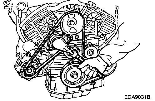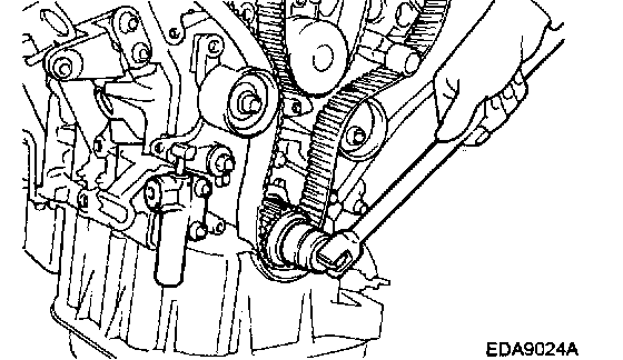 NOTE: When using the timing belt again, make sure of marking the rotating direction on the belt so as to install correctly.