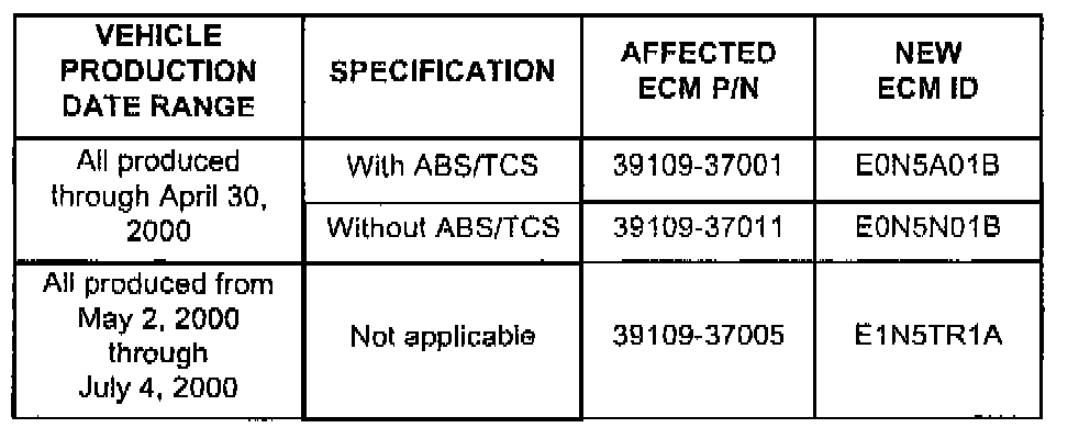 ^ Model: 1999 and 2000 Sonatas equipped with 2.5L V-6 engines