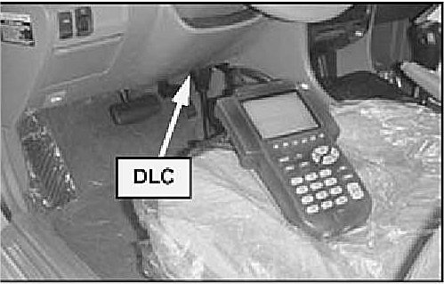 3. Plug the DLC cable from the Hi-Scan Pro into the data link connector (16-pin connector) at the drivers side lower crash pad.