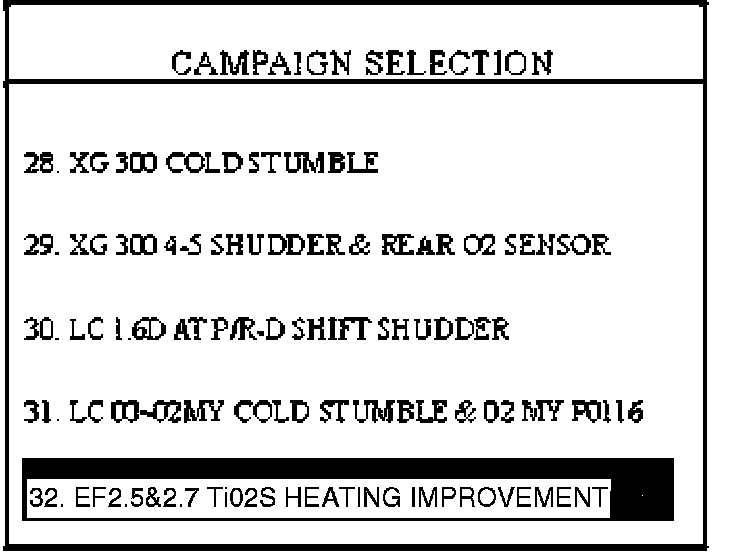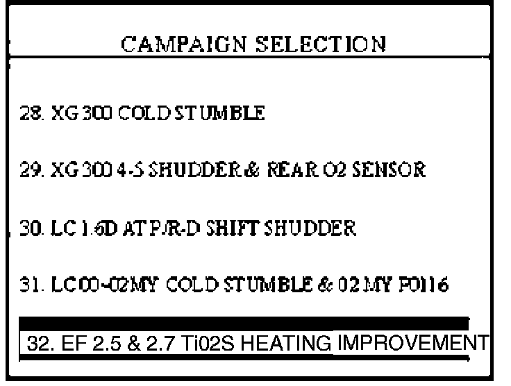 3. Select option 32. EF 2.5, 2.7 Ti02S HEATING IMPROVEMENT and press ENTER.