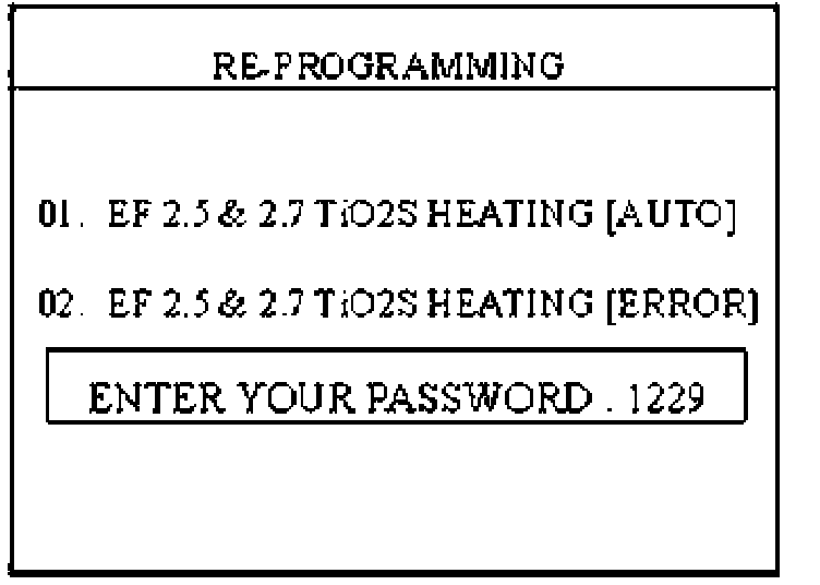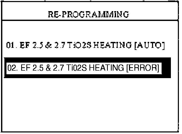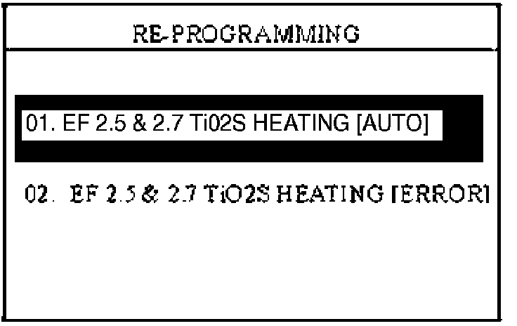 In the event menu option 01. EF 2.5, 2.7 Ti02S HEATING [AUTO] fails to download the new program, option 02. EF 2.5, 2.7 Ti02S HEATING [ERROR] must be used.