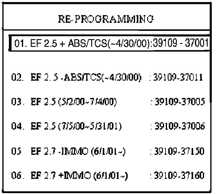 7. Select 01. EF 2.5 2.7 Ti02S HEATING [AUTO] and press ENTER.