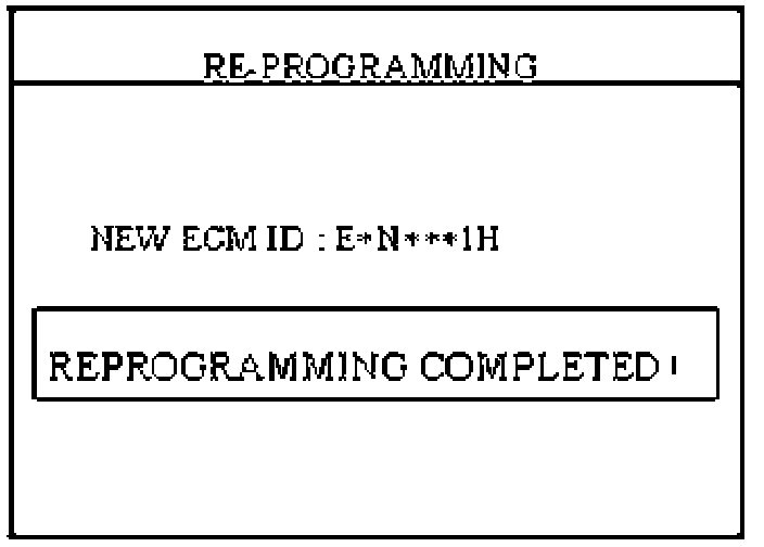 11. When the REPROGRAMMING COMPLETED message is displayed, check the new ECM ID displayed on the Hi-Scan Pro screen to verify that the correct ECM software has been downloaded.