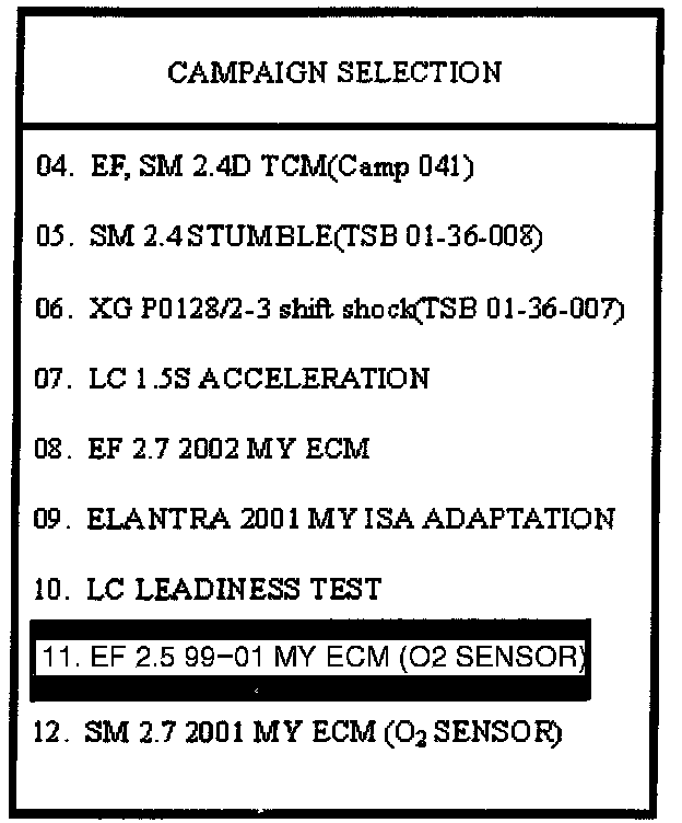 6. Select option "11. EF 2.5 99-01 MY ECM (02 SENSOR)" and press ENTER.