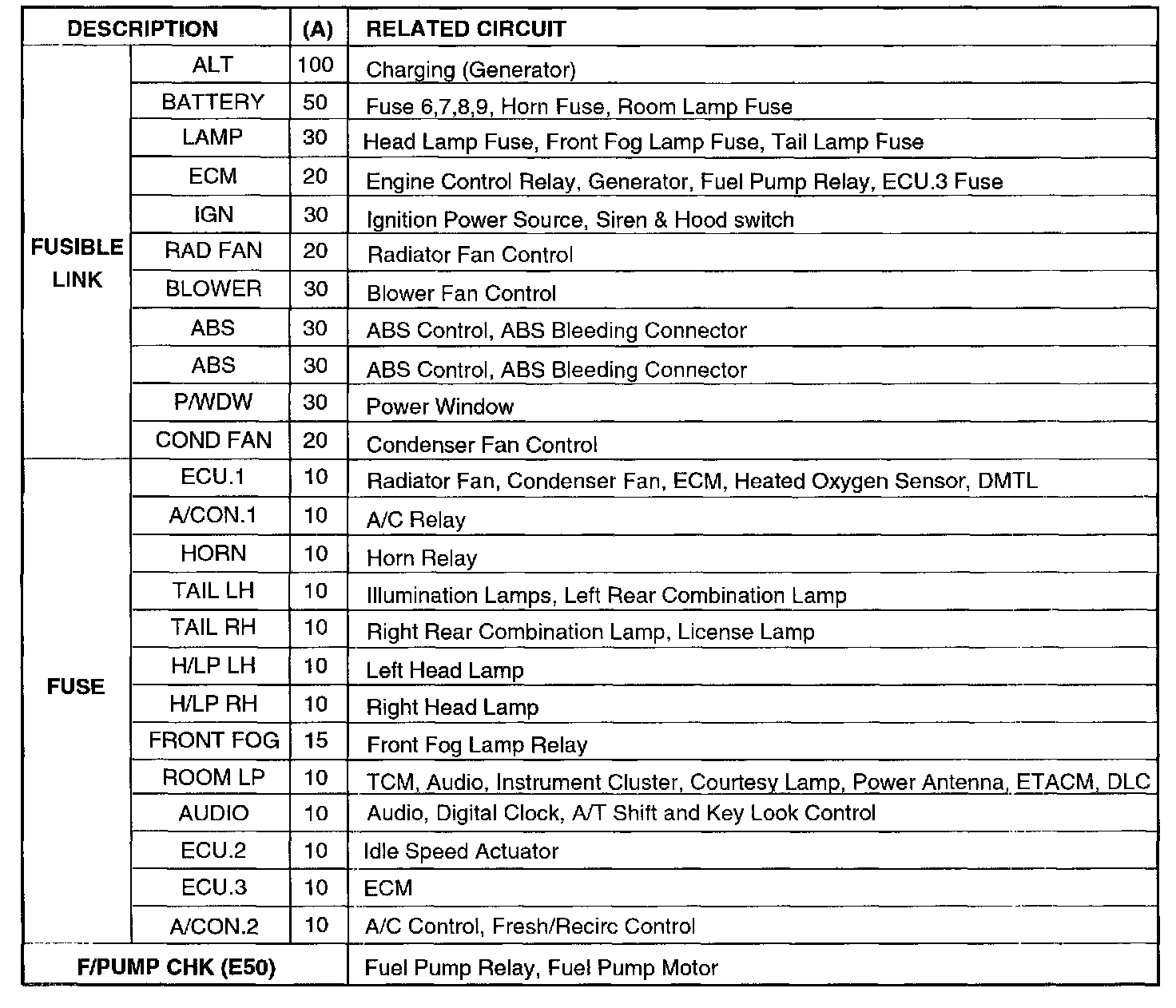 Fuse And Relay Information: