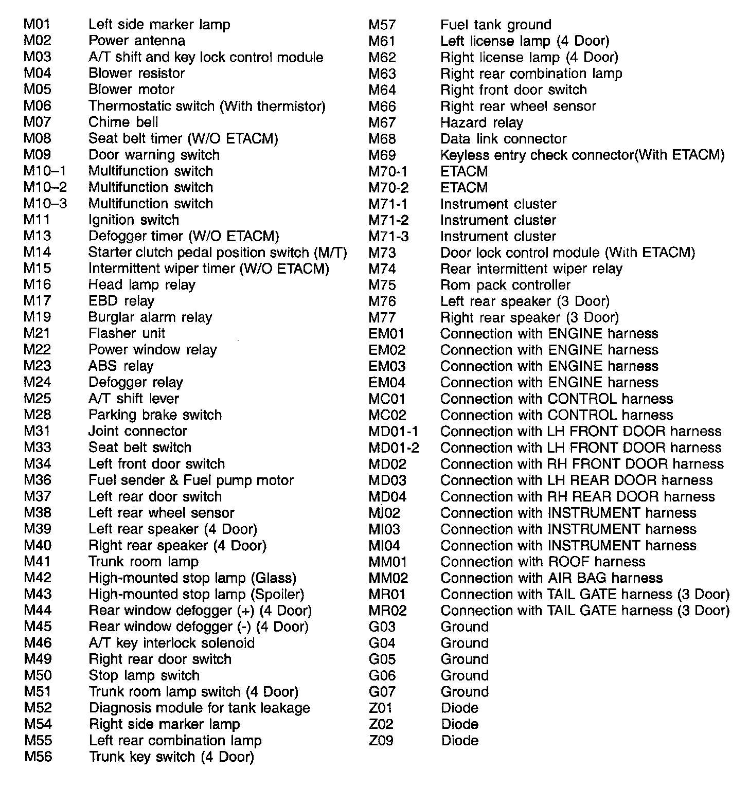 Main Harness Index: