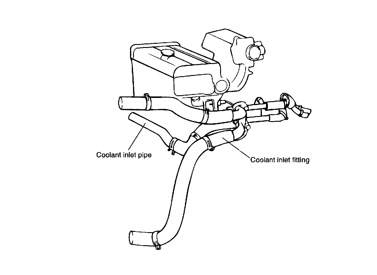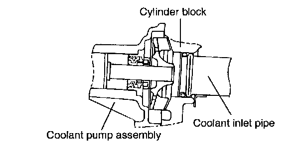 1. Fit on O-ring in the groove provided at the coolant inlet pipe end, wet the O-ring with coolant and insert the coolant inlet pipe.