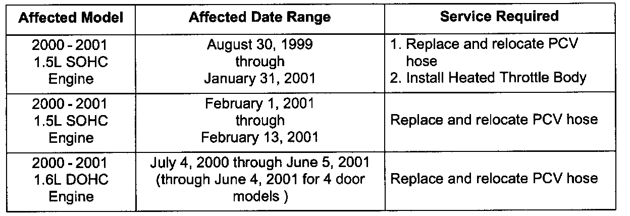 This bulletin describes the steps necessary to replace and relocate the PCV hose and install a heated throttle body on certain 2000 and 2001 model year Accents.
