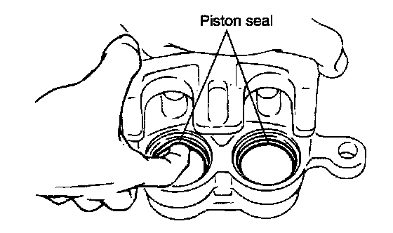 Blow compressed air into the brake hose seating hole. Remove the piston and the piston boot.